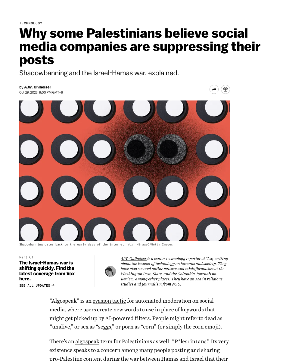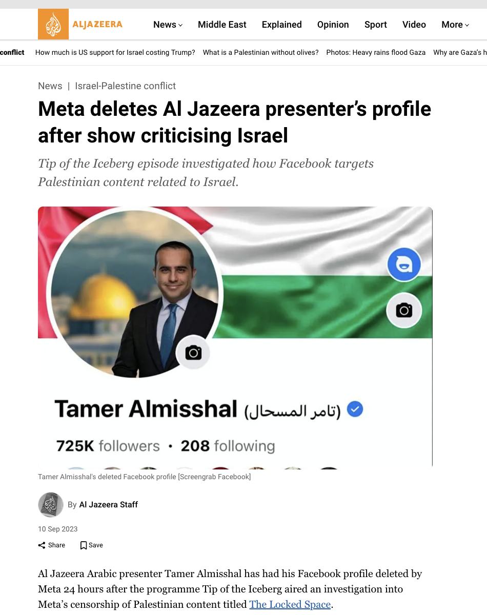 Pro-Palestine accounts suspended, or algorithmically suppressed across major platforms