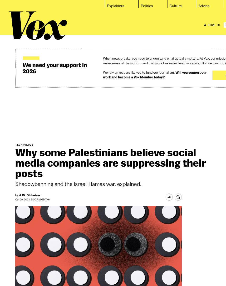 Major news outlets worldwide have documented the systematic censorship of Palestinian voices.